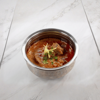 Tender chunks of beef slow-cooked in a rich, thick traditional curry sauce.